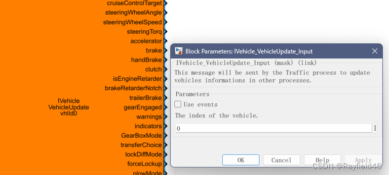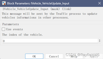 双击这个模块可以更改要读取的车辆ID, 默认为0号车辆。SCANeR中的车辆ID可以在事件树的Vehicle一项中查看。