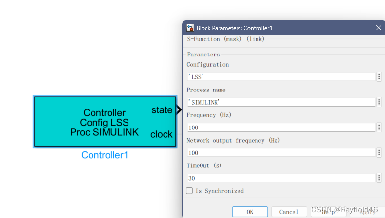 这个模块的功能是让SCANeR将我们的Simulink脚本识别为一个SCANeR模块,一个Simulink工程必须有且仅能有一个Controller模块。