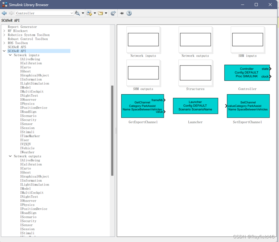 在库中打开SCANeR API找到Controller,将其拖入Simulink工程: