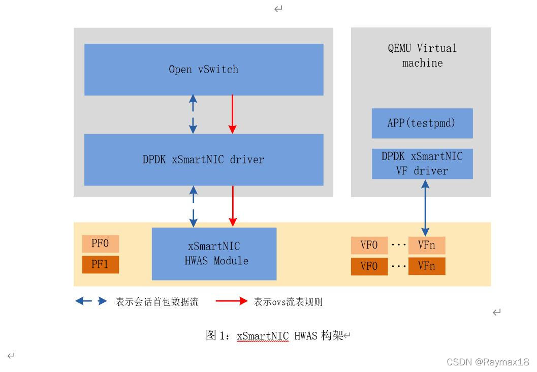 xSmartNIC HWAS方案是基于开源项目Open vSwitch和DPDK来实现的,总体实现架构如下图1所示。