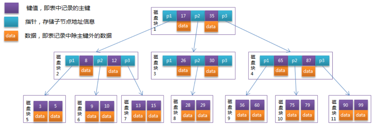 The data of the B-Tree structure allows the system to efficiently find the disk block where the data is located.