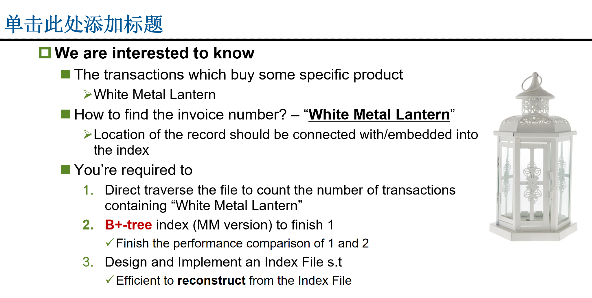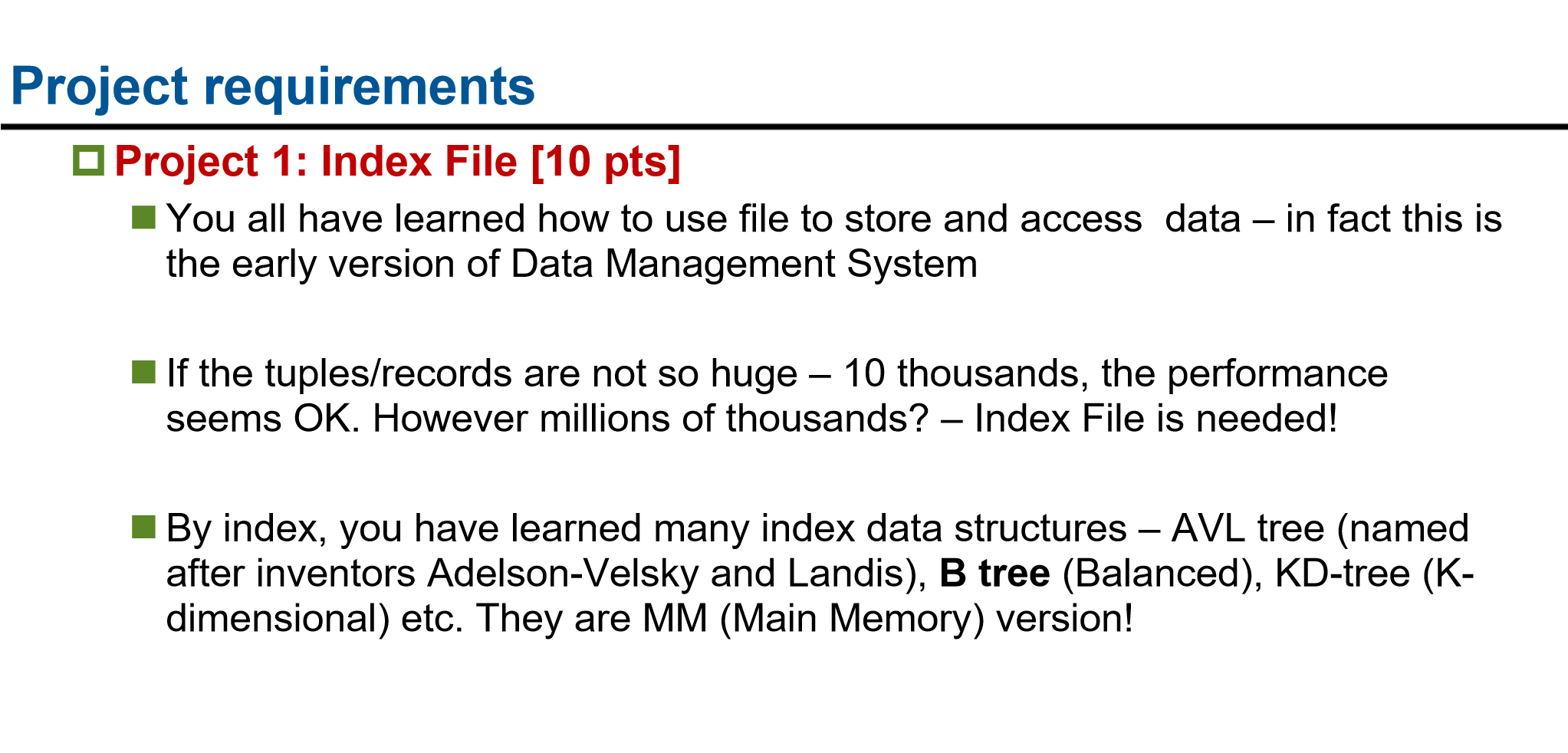We need to design a index file system, which use the B+ -tree. And it could count something.
