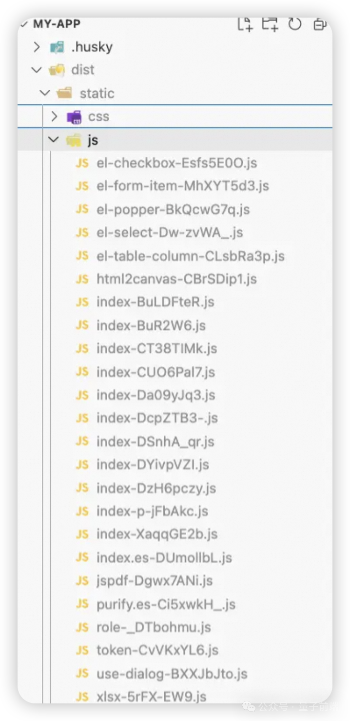 assetFileNames: 'static/[ext]/[name]-[hash].[ext]' // 静态资源文件名build一下,打包后到结果: