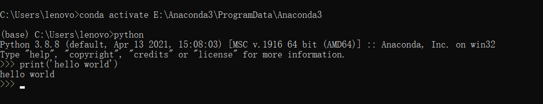 这里myenv填入base后面的地址:我的就是——conda activate E:\Anaconda3\ProgramData\Anaconda3
