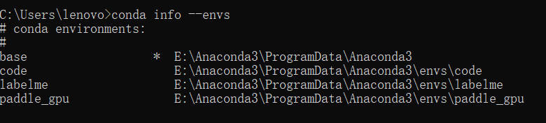 在cmd控制台中输入conda info --envs