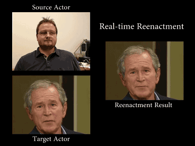 美国斯坦福大学的研究团队近期研发出一款人脸跟踪软件Face2Face,它可以通过摄像头捕捉用户的动作和面部表情,然后使用Face2Face软件驱动视频中的目标人物做出一模一样的动作和表情,效果极其逼真。