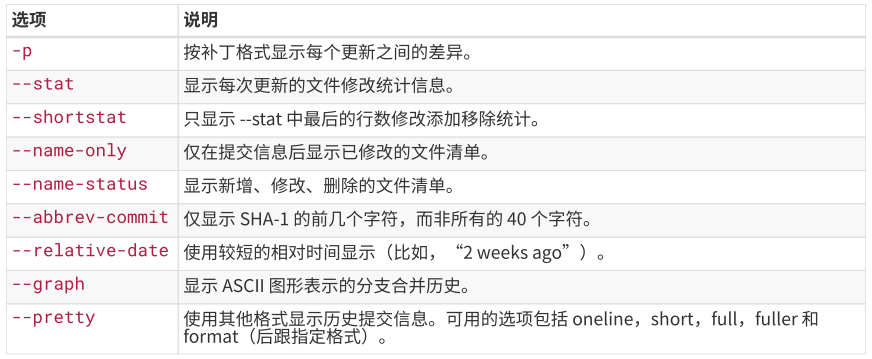 9 查看提交历史使用git log命令。下图是其常用选项: