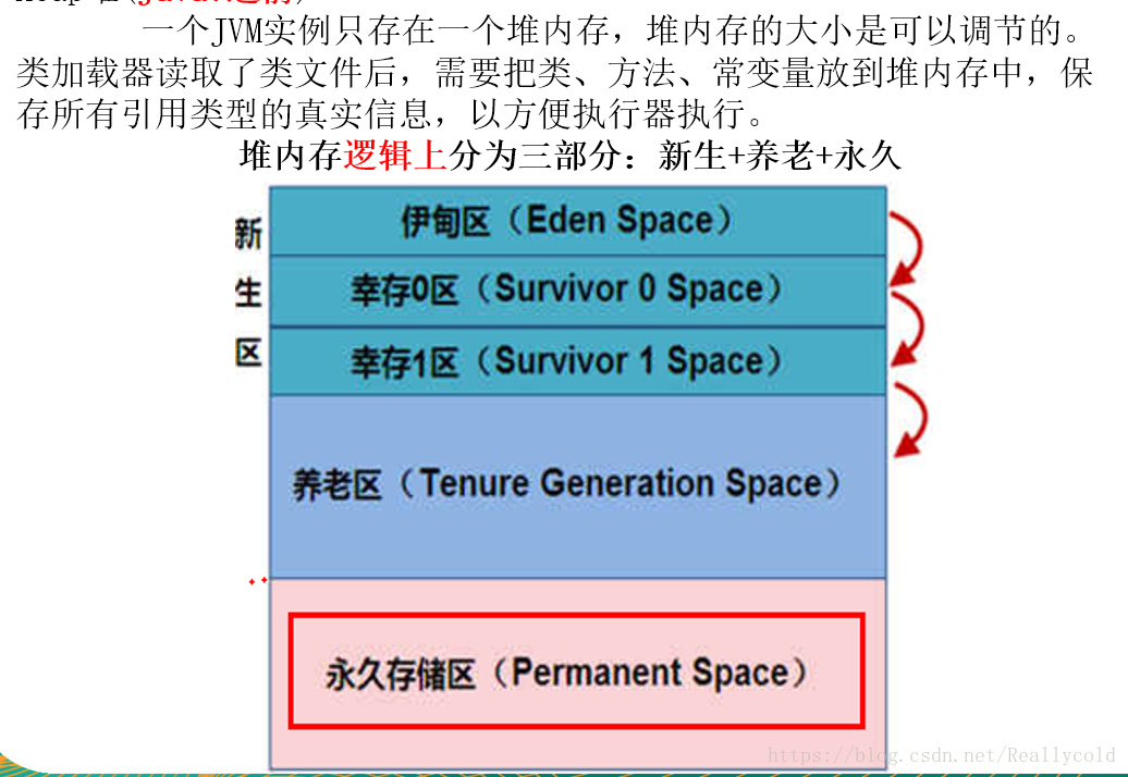 新生区又分为两部分: 伊甸区(Eden space)和幸存者区(Survivor pace) ,所有的类都是在伊甸区被new出来的。幸存区有两个: 0区(Survivor 0 space)和1区(Survivor 1 space)。from Survivor To Survivor