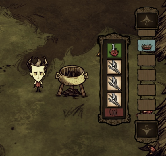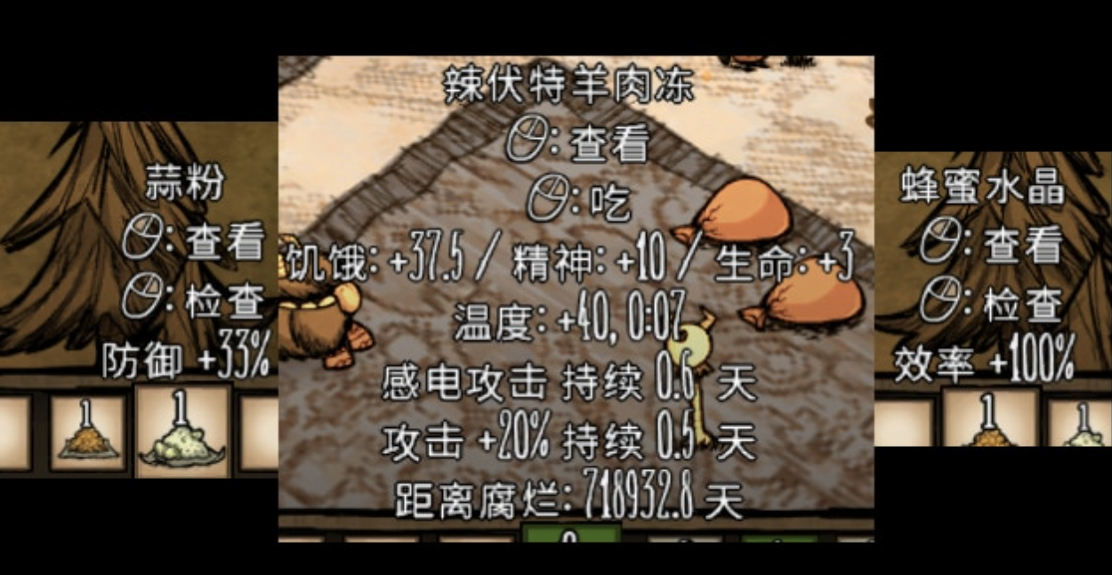 厨子必备的mod,做饭放入材料可以显示能做出的菜品结果,也可以查询某种菜品需要什么条件才能做。