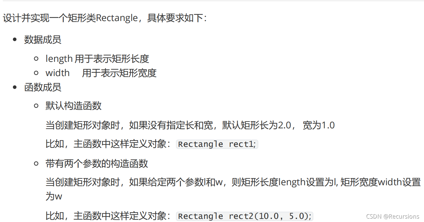 Rectangle rect2(15, 5); // 带有两个参数的构造函数被调用