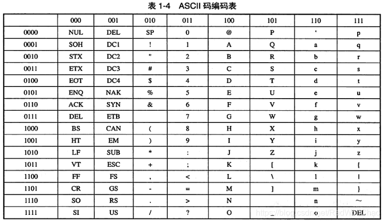 字符的编码 ASCII码(American Standard Code for Information Interchange) 美国标准信息交换码