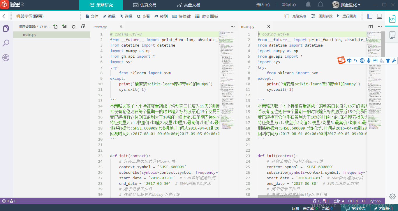 通过以上的指引使用教程,我们就可以很快地通过掘金量化交易平台,快速使用python编程语言实现您的量化交易策略模型,开启您的量化交易掘金之旅。