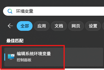 Windows搜索栏搜索“环境变量”,选择“编辑系统环境变量”