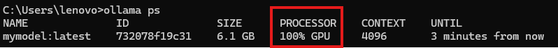 使用 ollama ps 验证GPU是否生效: