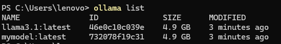 ollama create mymodel -f Modelfile