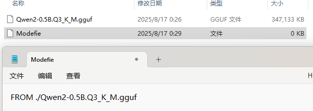 2、新建一个Modelfile文件,内容为: