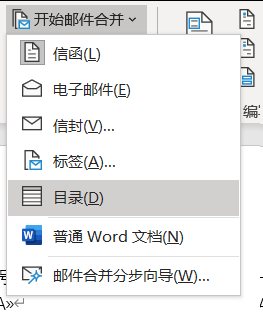 使数据不分页:将开始邮件合并中默认的信函改为目录