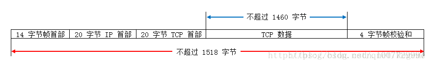二型以太网(Ethernet Type 2)中规定,帧的大小不能超过 1518 个字节(14 字节的帧头 + 4 字节帧校验和 + 最多 1500 字节数据);