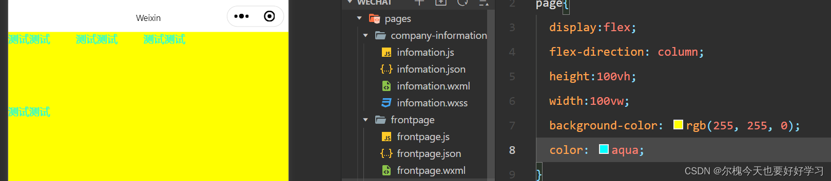 但这四个文件有些功能会相互重合,例如设置窗口背景色就可以同时在js文件中动态设置,在json文件中配置,在wxss中配置。