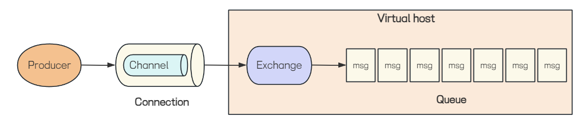 - Producer 连接到RabbitMQBroker, 建⽴⼀个连接(Connection),开启⼀个信道(Channel)