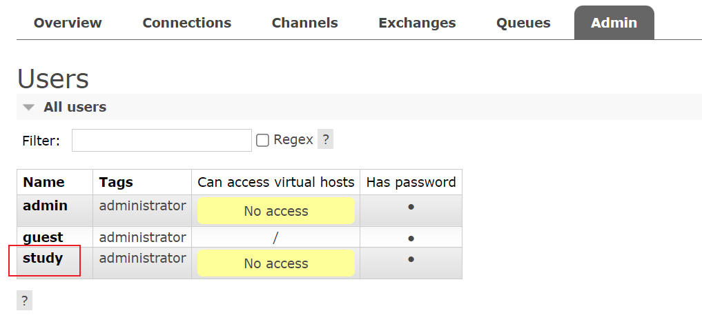RabbitMQ管理界⾯上的Connections,Channels, Exchange, Queues 就是和上⾯流程图的概念是⼀样