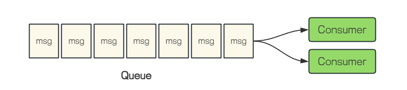 - Queue就是快递站点⾥的⼀个个仓库, ⽤来临时存放等待派送的包裹. 每个仓库都有⼀个或多个快递员(消费者)负责从仓库中取出包裹并派送给最终的收件⼈.
