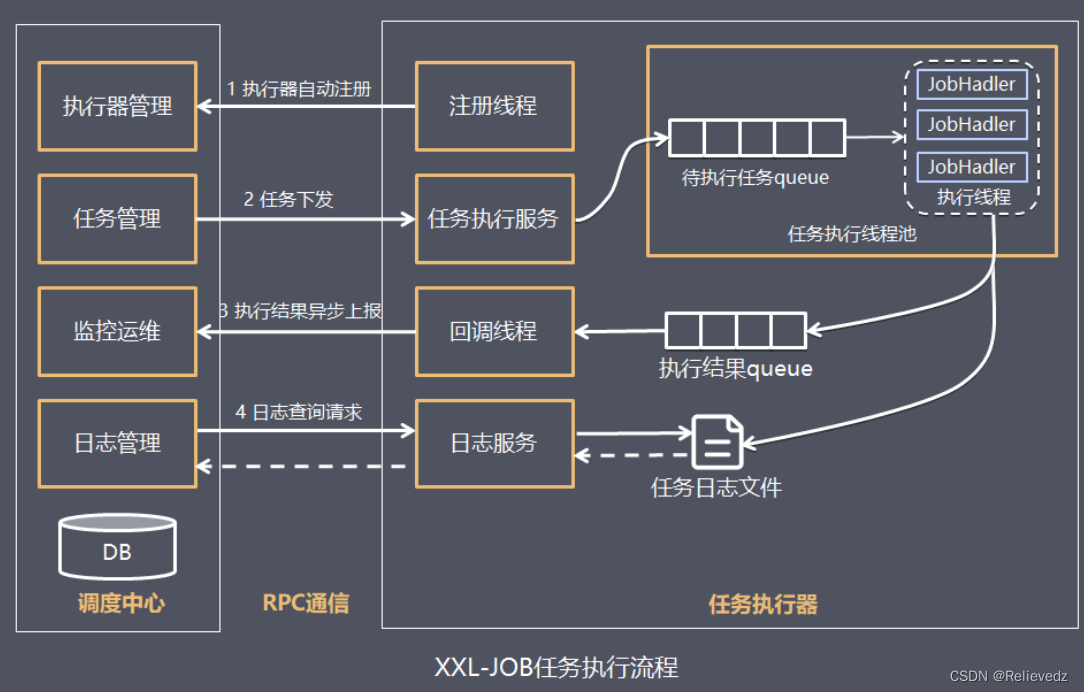 调度中心与执行器之间的工作流程如下: