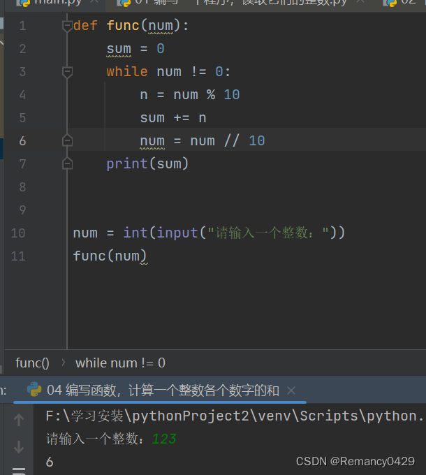五、编写一个程序,计算一个整数各个数字的和
