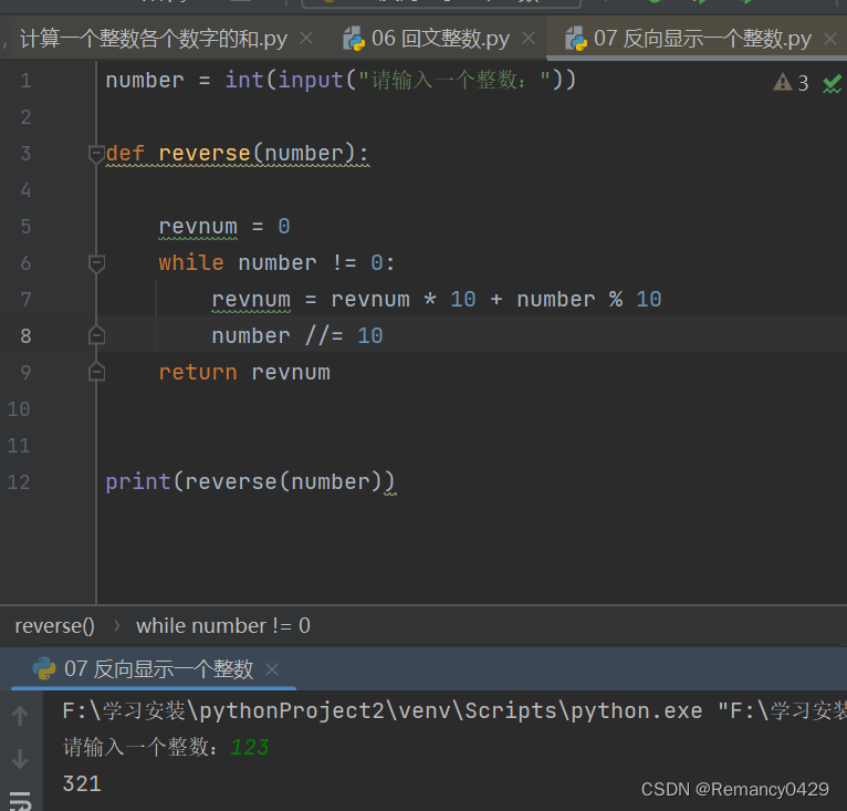 七、编写下面的函数,反向显示一个整数