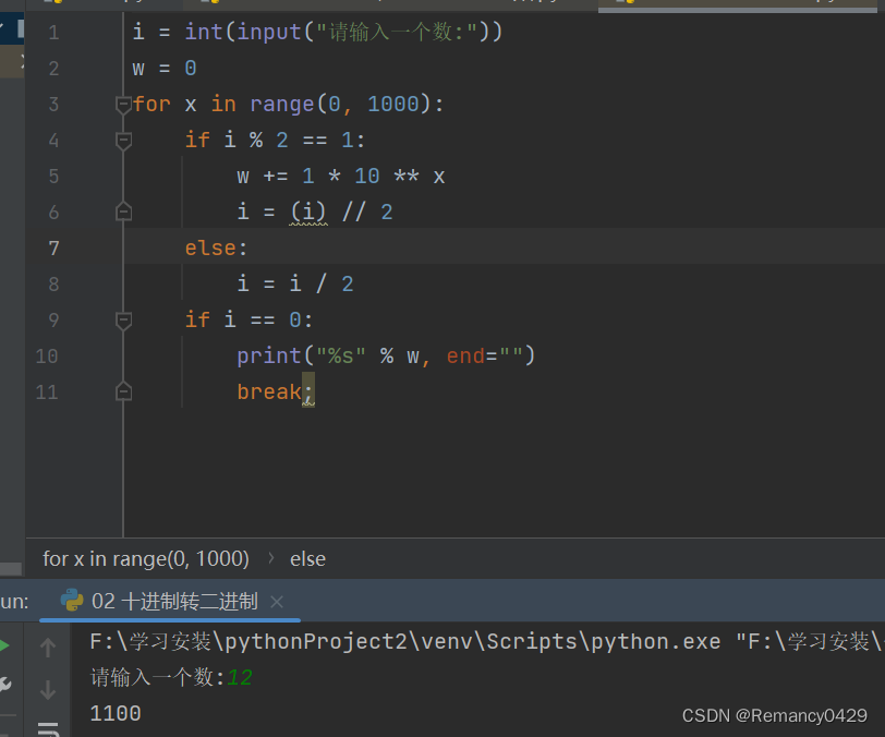 二、编写程序提示用户输入一个十进制整数,然后显示它对应的二进制数