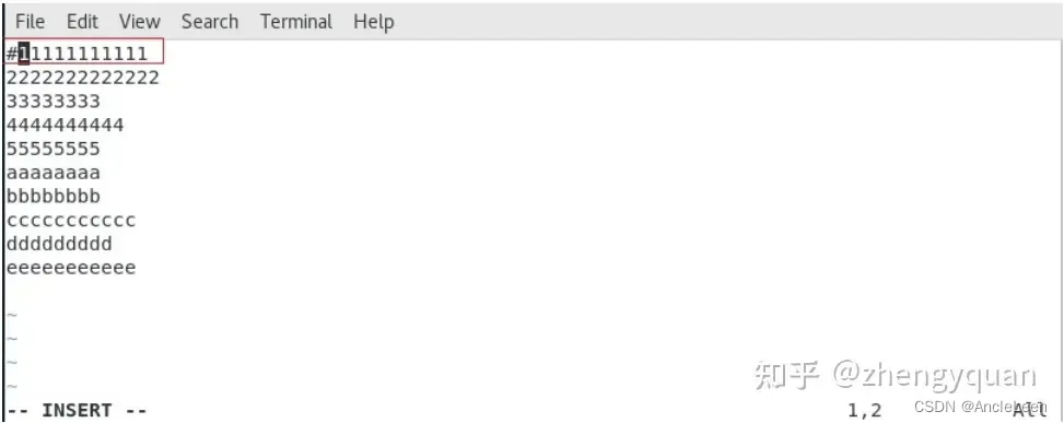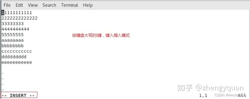 第四步: 按下键盘 (大写) “I” 键,进入插入模式( Shift+i)