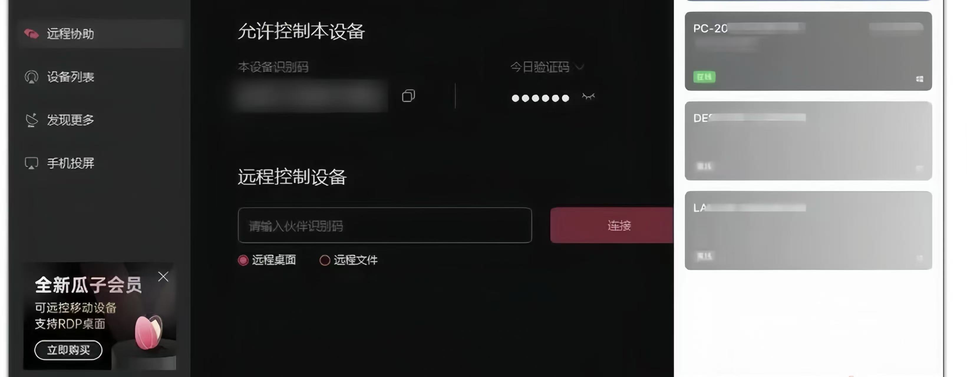 向日葵:免费版日常使用表现良好,但是跨国连接 “卡成常态”,实测帧率常低于 10FPS,鼠标操作有明显延迟;付费升级会员后,仍出现 “被控设备搜索不到” 的问题,对科研、设计等强依赖远程的场景极不友好。