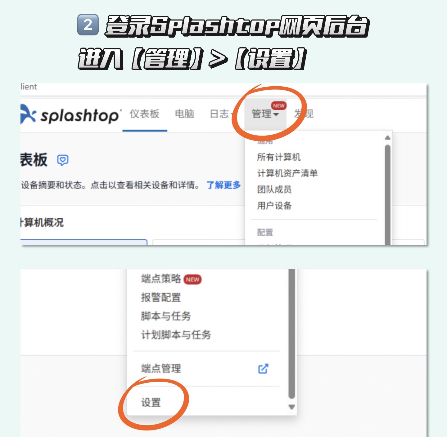 登录 Splashtop 网页后台(https://my.splashtop.com),进入【管理】→【设置】。