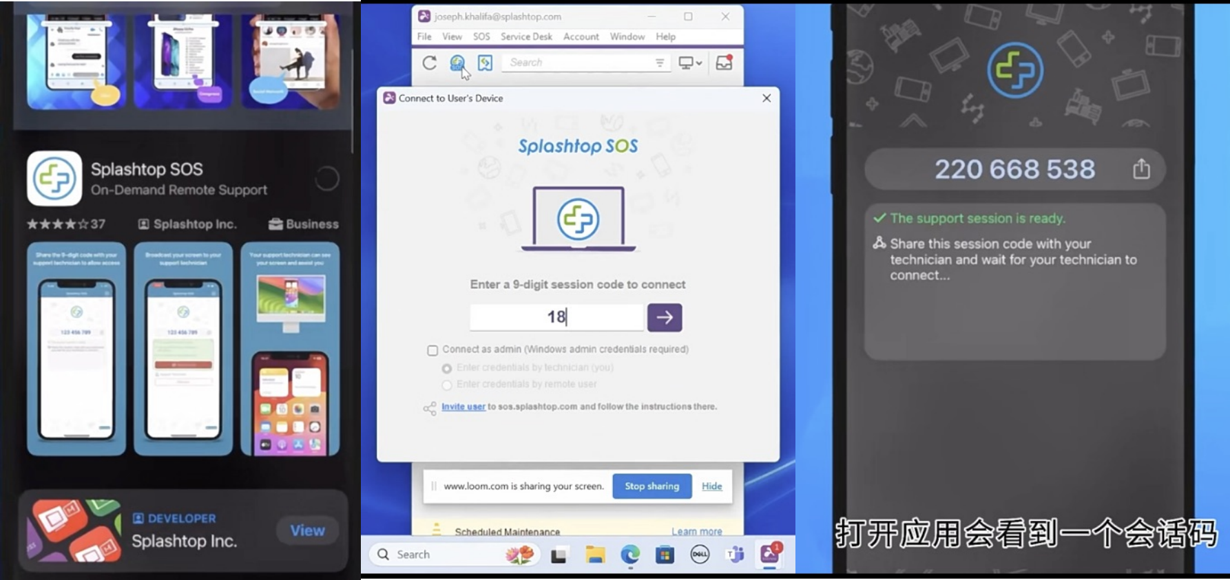 我和朋友的操作过程特别简单,完全不用额外设置复杂参数。我先像往常一样用 Splashtop 连接自己的电脑,朋友只需要通过同样的方式登录同一台设备,几秒钟就完成了同步接入。更方便的是,如果使用 Splashtop SOS 功能,只需要输入同一个 9 位会话码,就能快速加入会话。