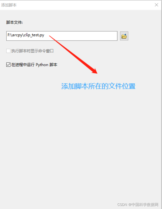 接下来我们会看到在ArcToolBox中出现了刚刚创建的工具箱,然后右键工具箱—添加—脚本,出现下图对话框