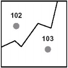 标注点也可以将属性与多边形链接起来。Coverages中的每一个多边形有一个带有要素ID的标注点,通常位于多边形的中心。在下图中,展示了两多边形102和103的标注点。