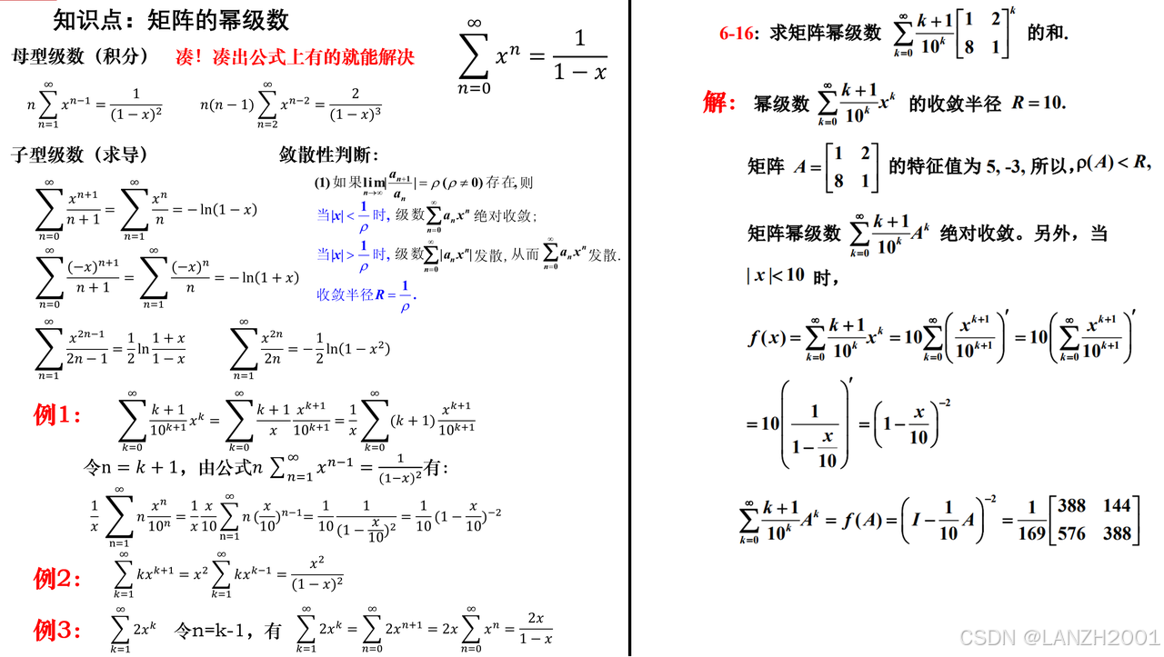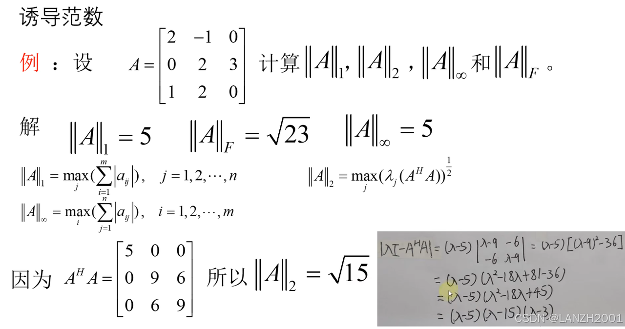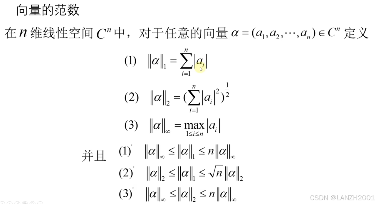 第五章 矩阵范数 向量范数 幂级数,必考矩阵范数填空题,算列和范数、行和范数、F-范数、谱范数。大题大概率考证明。大题几乎必考幂级数收敛证明+求收敛和。