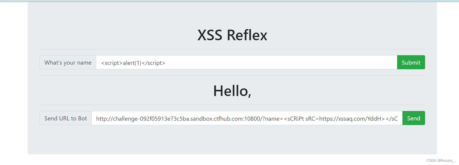 本题:在What's your name里输入代码:<script>alert(1)</script> 发现弹出弹窗