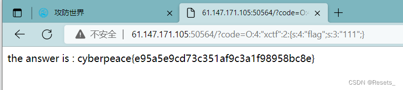 3.对xctf的这个类进行的序列化,而不是flag这个属性,将得到的进行反序列化,将1变成其它数字: