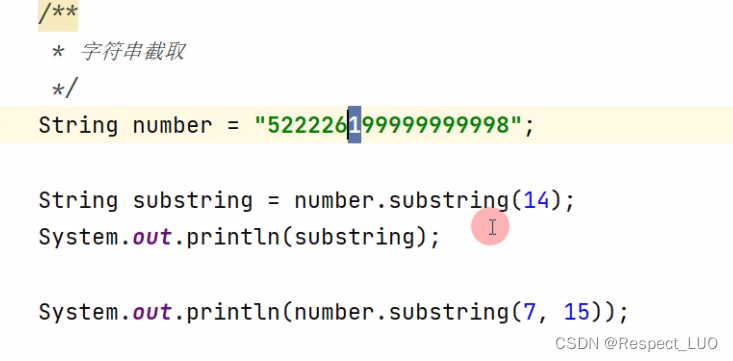 1、从指定位置截取到结束位置(末尾):substring(int start) 2、截取指定范围内的字符串:substring(int start, int end)