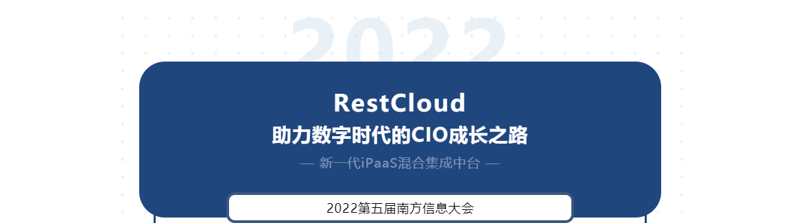 RestCloud在第五届南方信息大会上被评为2021年度CIO优选数字化服务商。作为iPaaS领域的领军企业,RestCloud提供一站式混合集成平台解决方案,帮助企业解决业务系统集成难题,加速数字化转型。