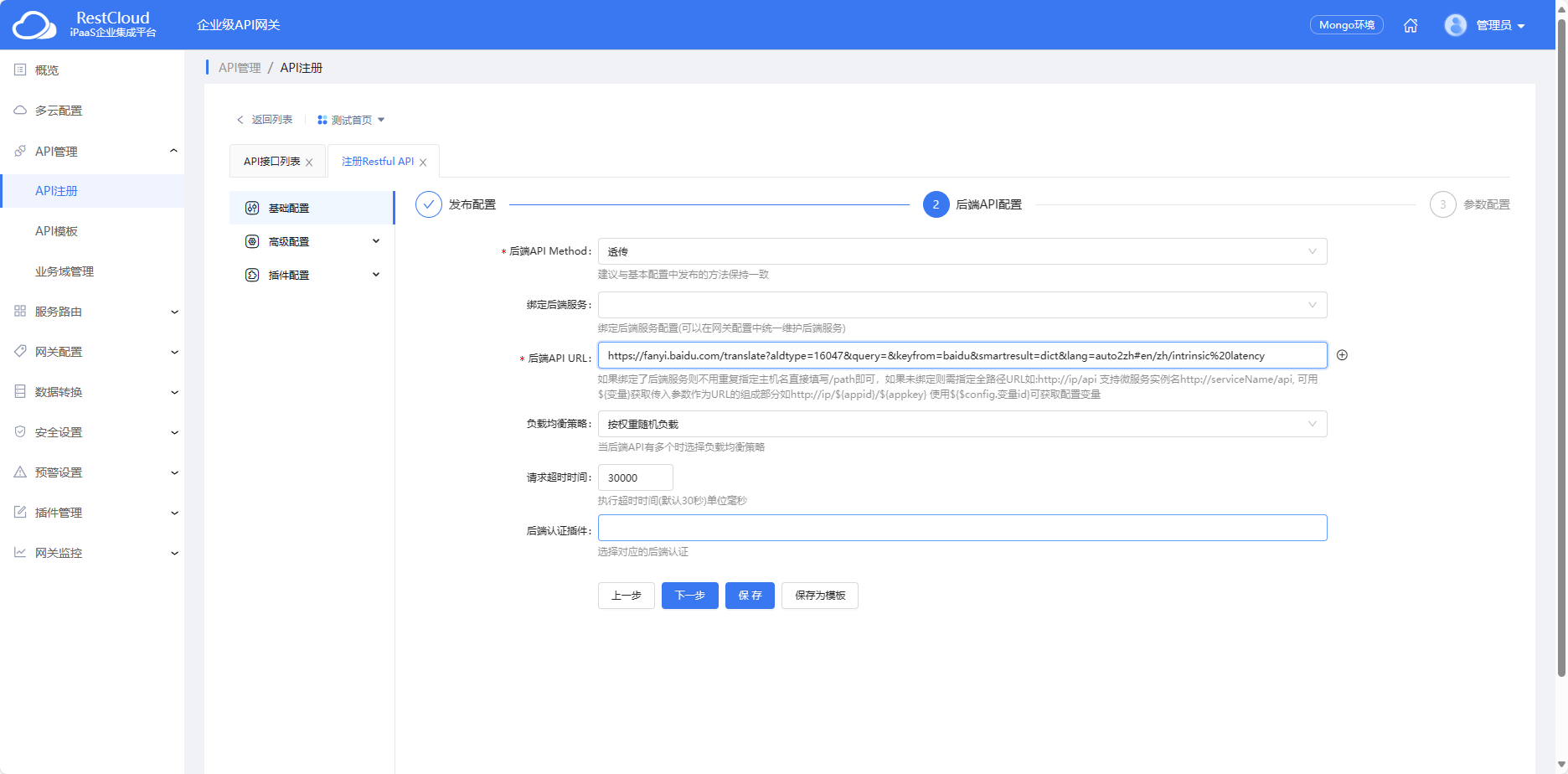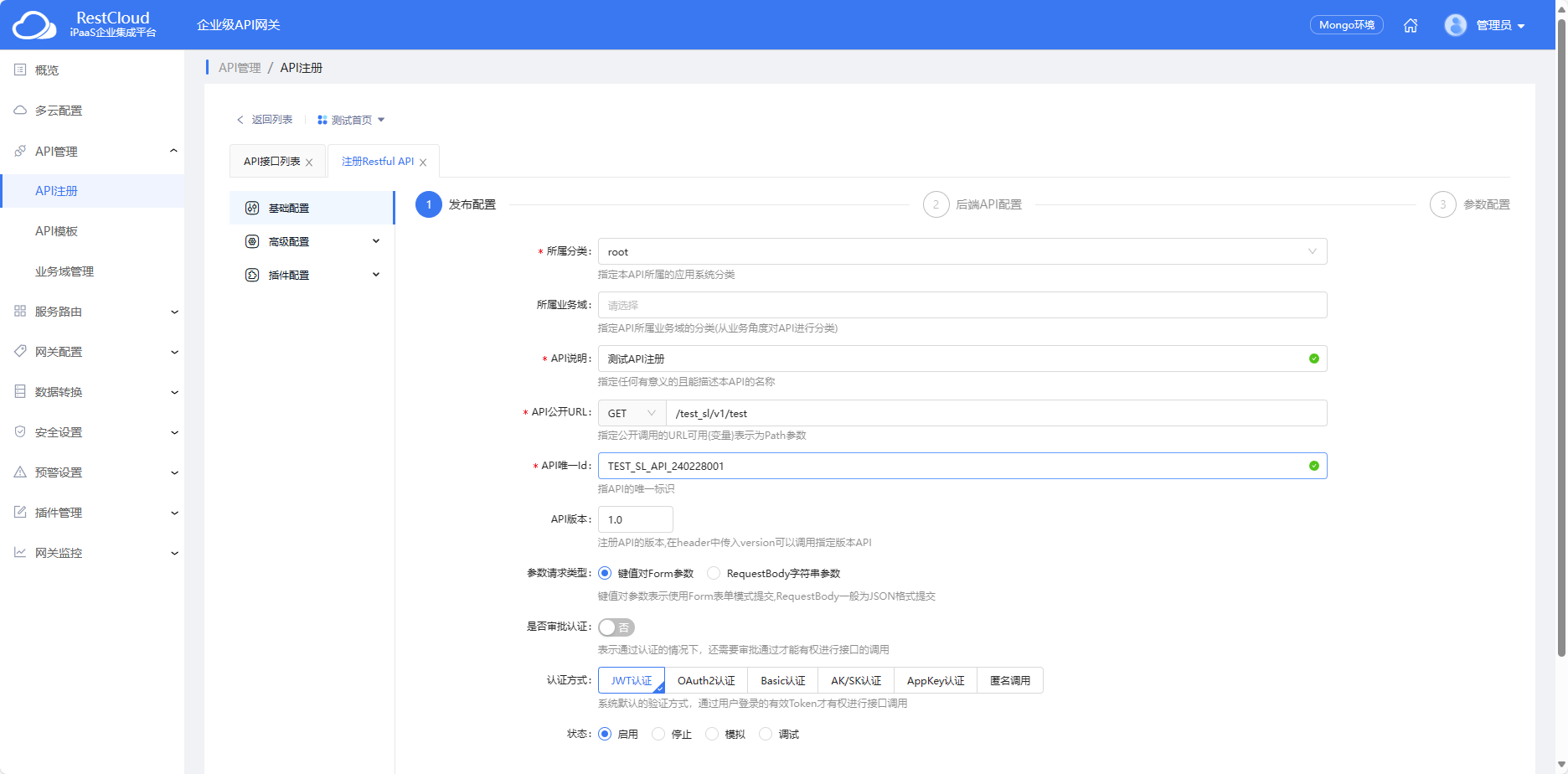 接下来用RestCloud iPaaS平台进行协议接口对接,在平台上创建接口时,需要配置接口的基本信息,如接口地址、请求方法、请求参数和响应参数等。这些配置需要与对接双方的协议规范保持一致,以确保数据的正确传输和处理。