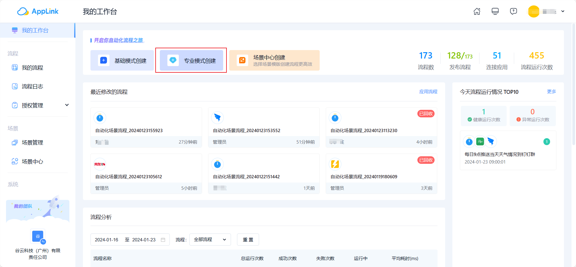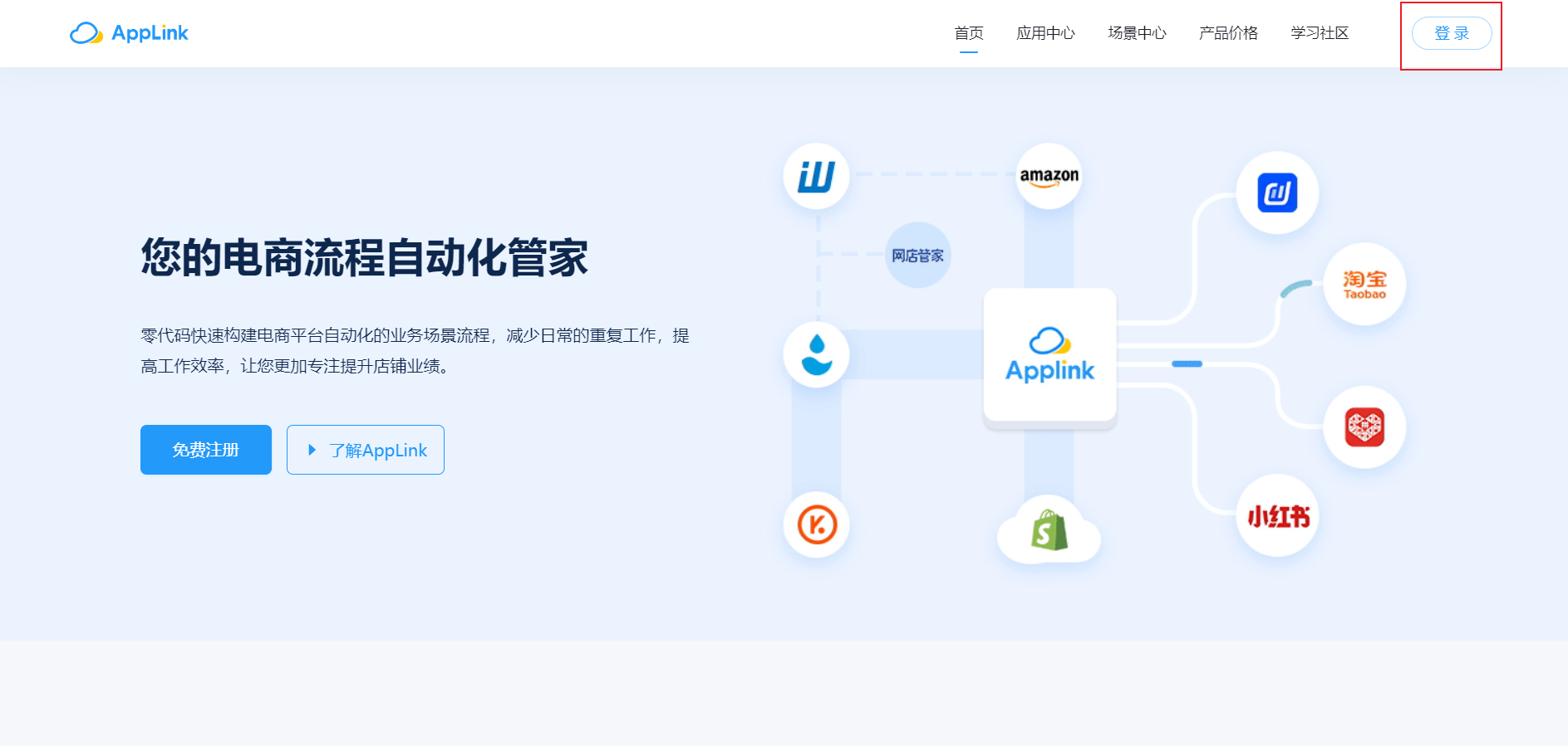 1.点击AppLink自动化集成平台 ,注册登录AppLink集成平台后进入我的工作台