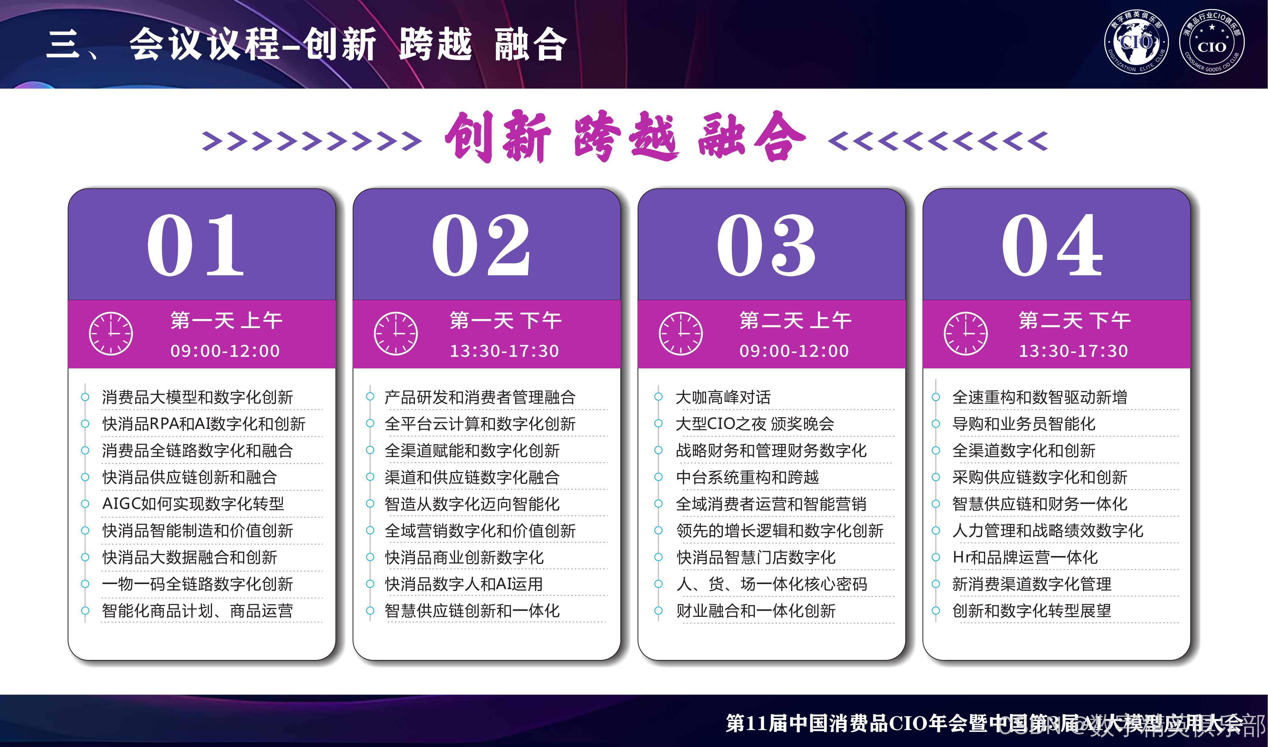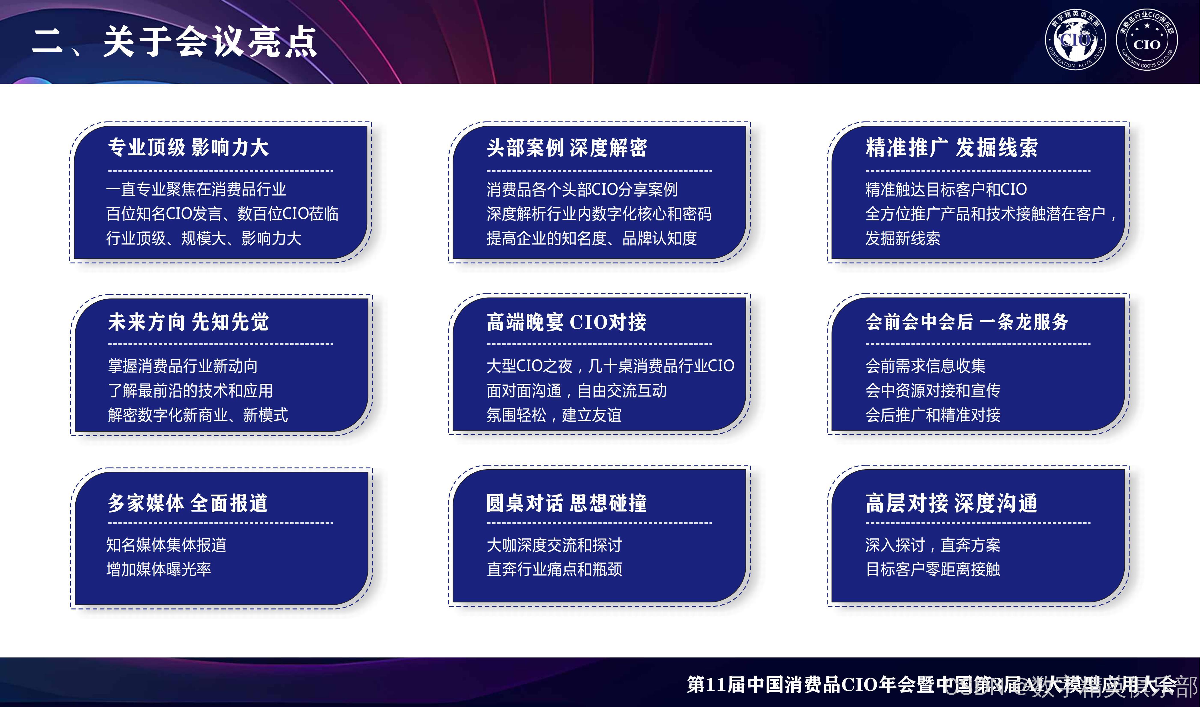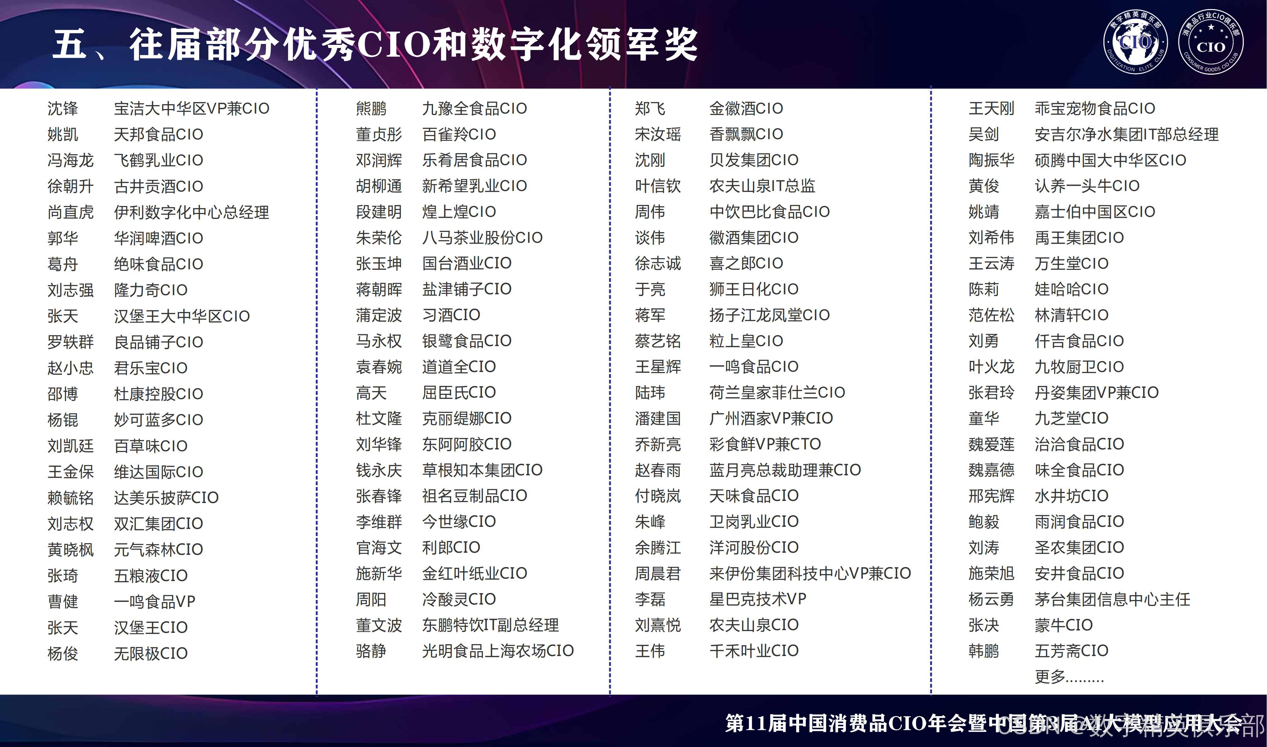 CGCA 2025来了,作为国内唯一 一家专注消费品行业聚焦CIO的主办方,一直为品牌方CIO和行业信息化提供商打造高质量、高效沟通的峰会。CGCA目前已成功举办多届,历届会议吸引了无数知名企业的CIO参与,是中国消费品行业级别高、规模大、极具影响力的CIO盛会。
