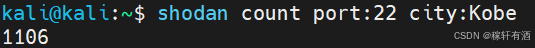 shodan count port:22 city:Kobe # 查询日本神户市所有开放了 SSH (Secure Shell) 服务端口 22 的设备数量