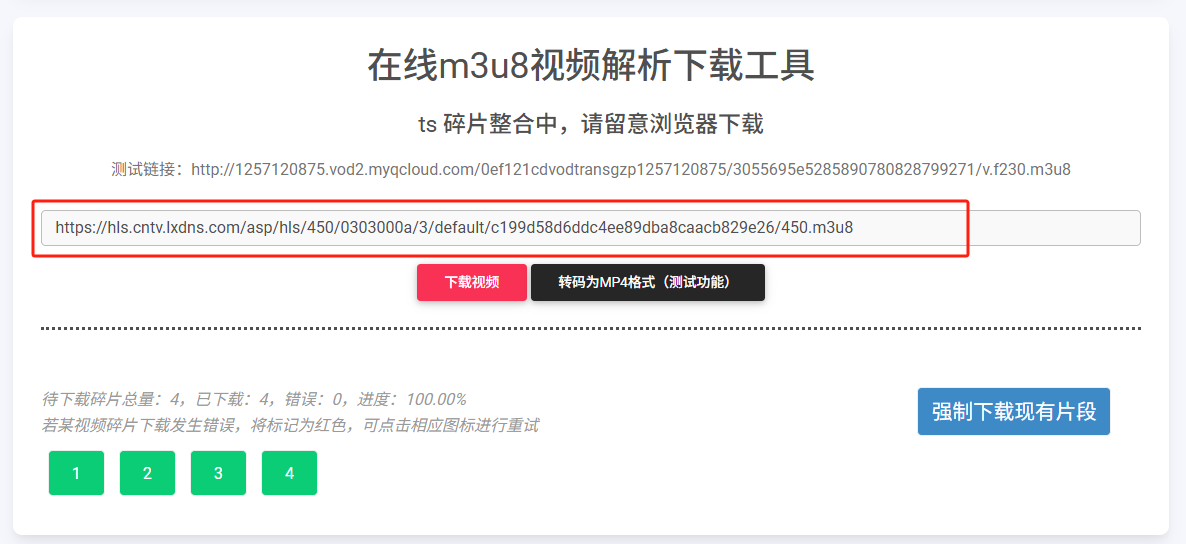 4、使用M3U8在线下载工具,参考工具:“https://m3u8.shijuezu.com”,使用拼接好的网址进行下载。下载后的原视频格式为M3U8,可是使用视频格式转换工具,转换为MP4等格式。亦或者直接下载转码后的MP4视频。