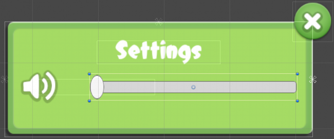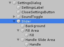 同样,右击SettingsDialog添加一个子对象,但这次添加一个UI▸Slider,将其重命名为VolumeSlider。