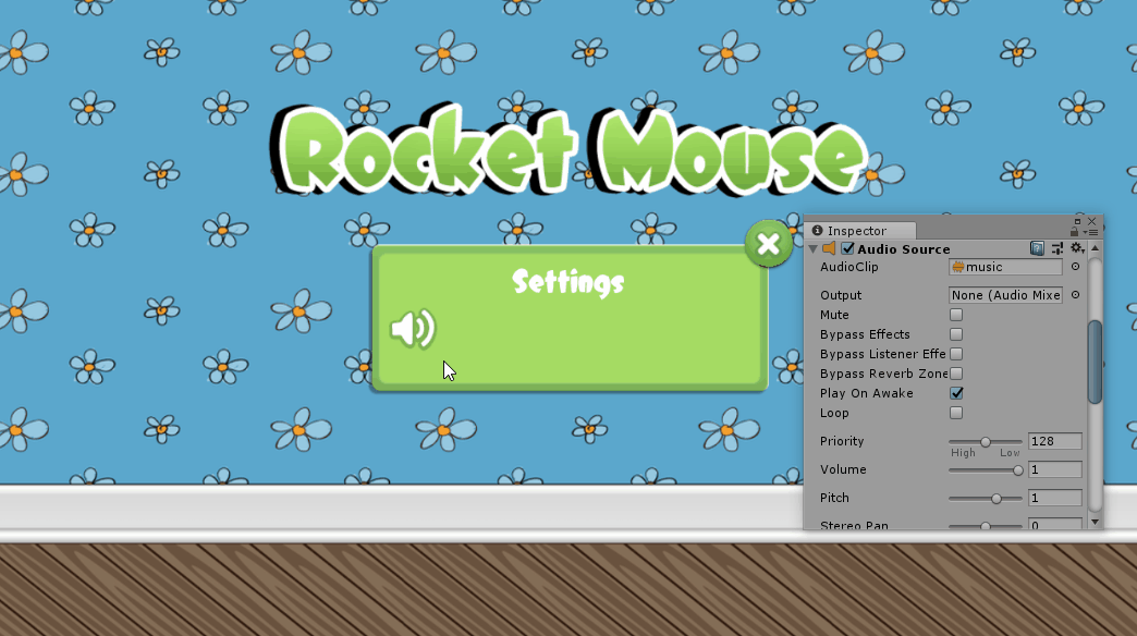 选择File ▸ Save以保存您迄今为止的工作,然后运行场景。打开设置对话框,尝试切换音乐的开和关。