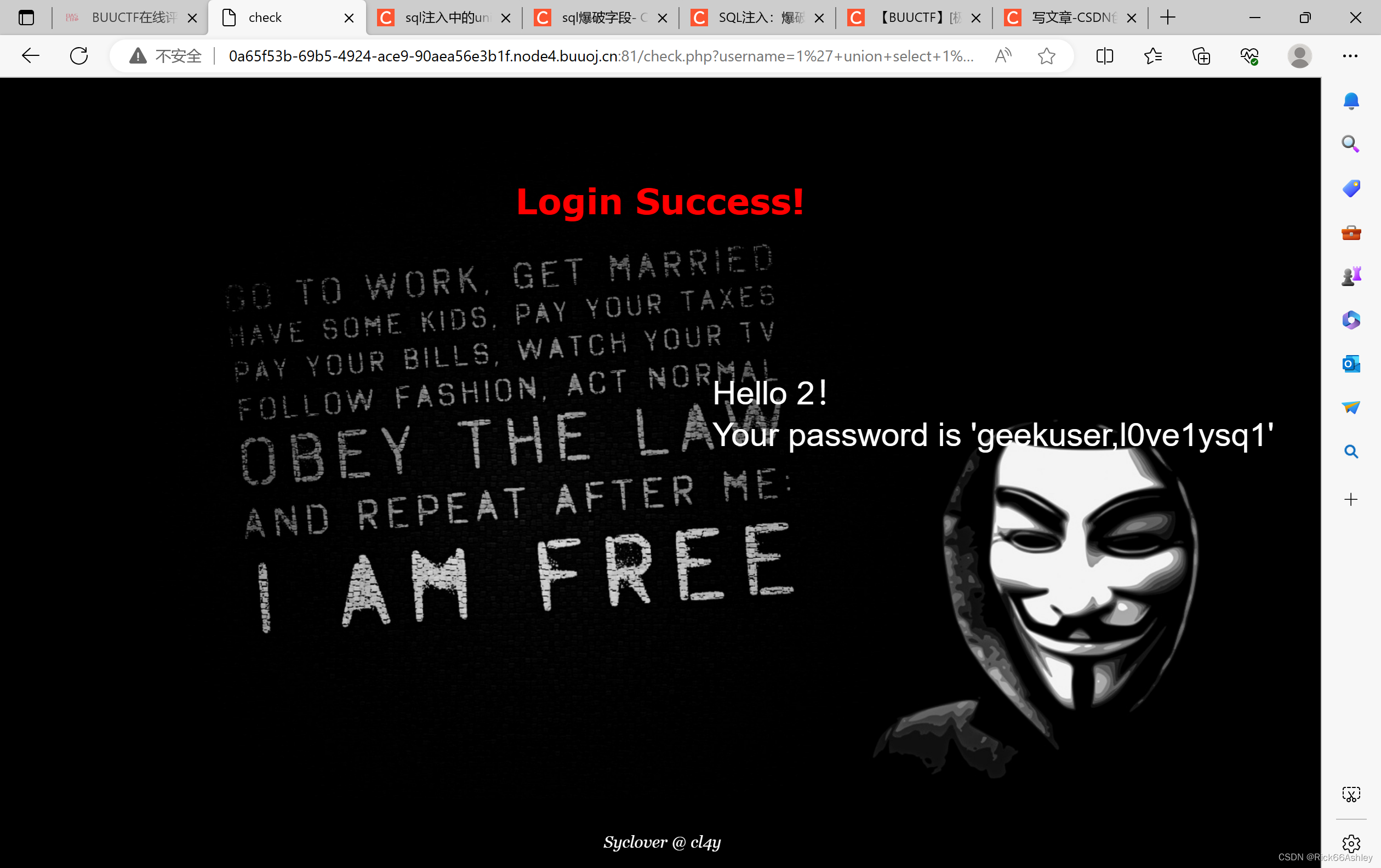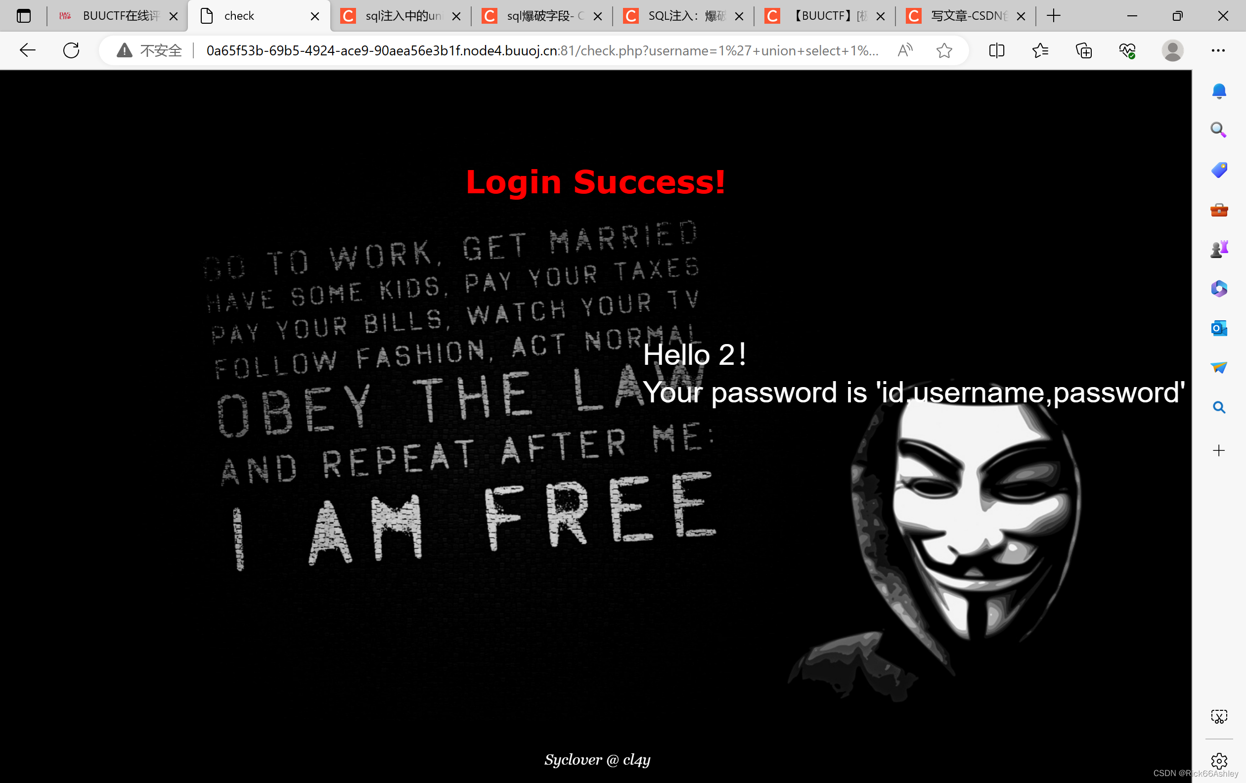 1' order by 4#,发现第4列不存在,好,那么就一共是3列,且其中两列必定为username和password