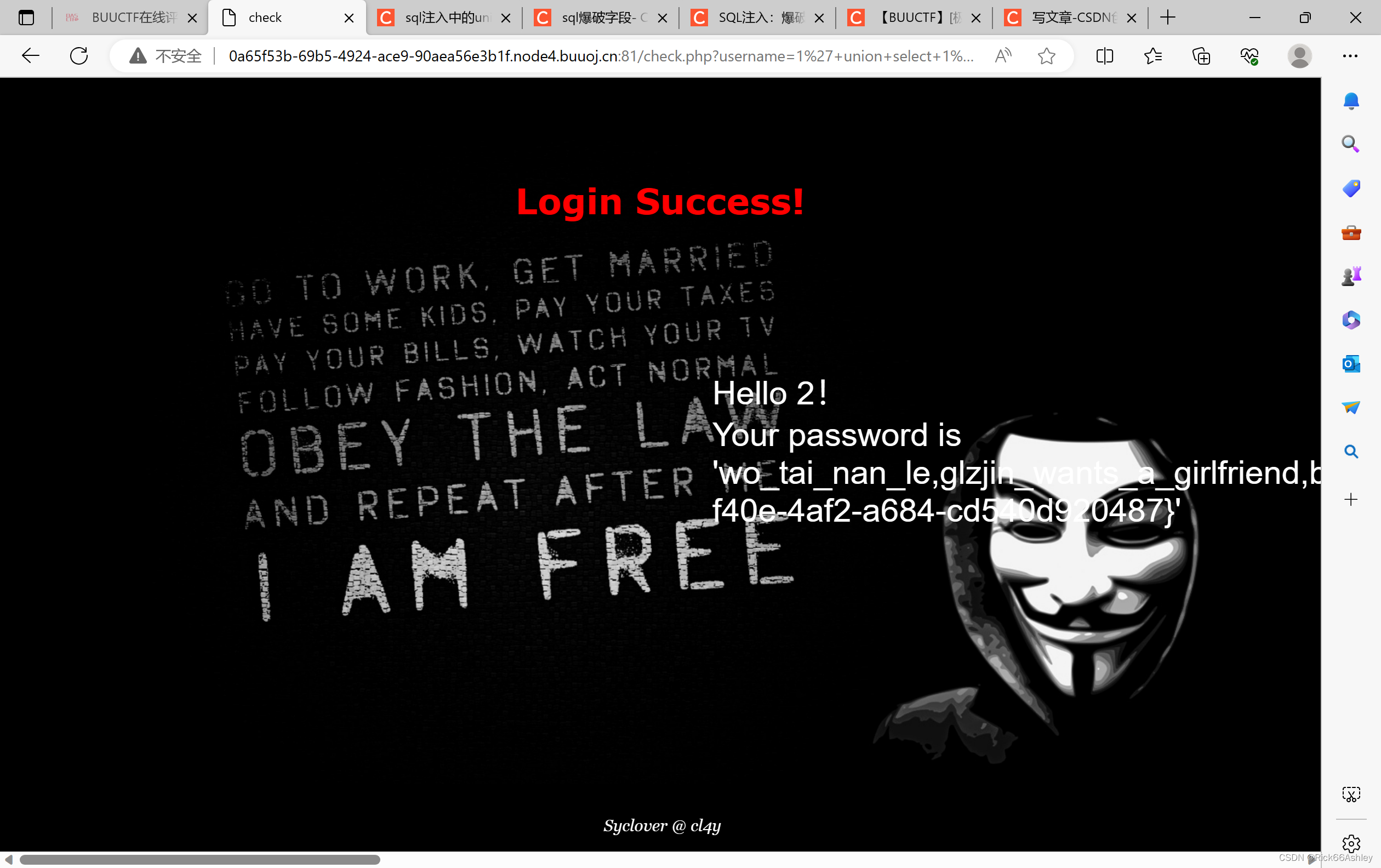 1' or 1=1 # 密码随便输,enter,发现可以注入;